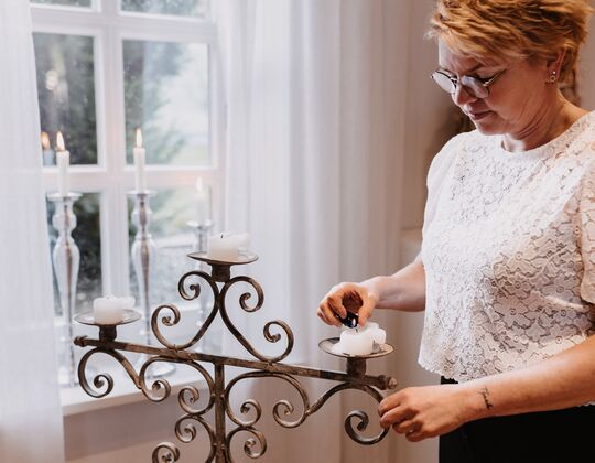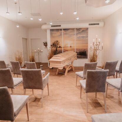 Es ist möglich, eine individuelle Verabschiedung am offenen Sarg bei euch zu Hause, in den Räumen des Friedhofes oder in unserem Abschiedsraum durchzuführen.